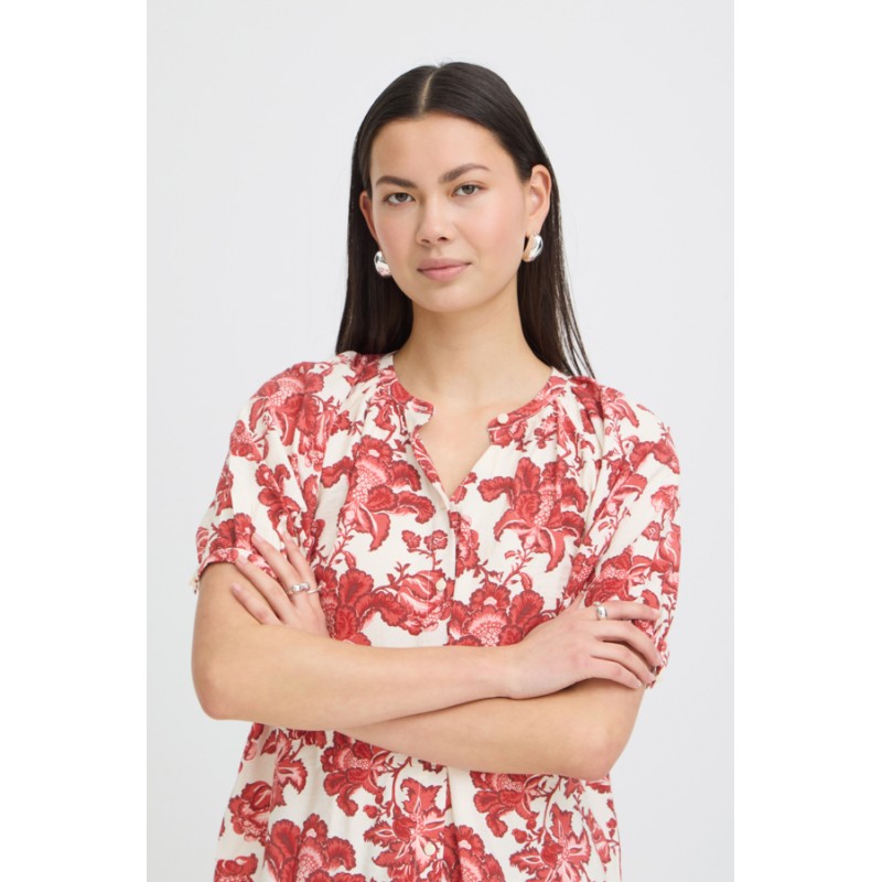 ICHI IHGILVIS SH - Kort ærmet skjorte med røde blomster 20125555 Red Floral Print fra Ichi