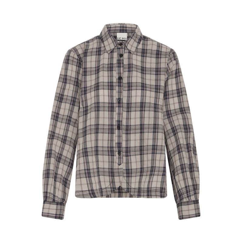 Smart gennemknappet ternet skjorte fra ICHI. Skjorten har lange ærmer og en flot rundet afslutning forneden.