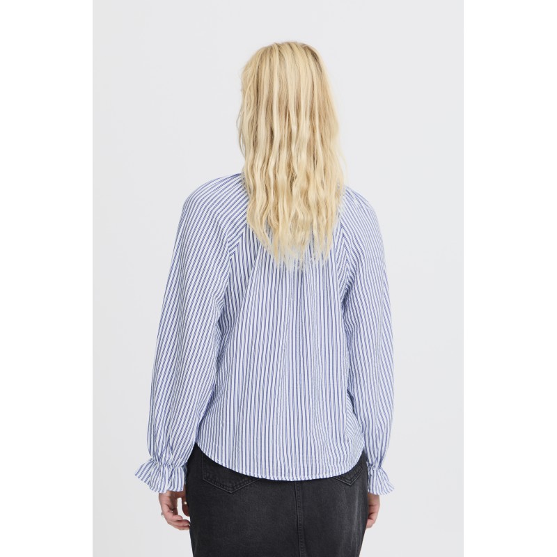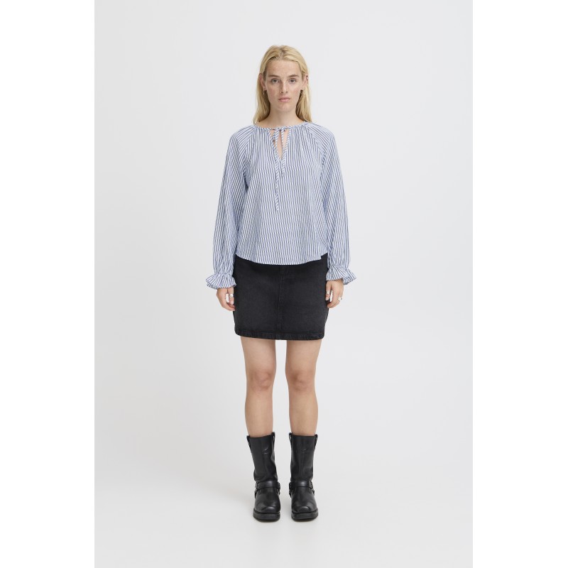 ICHI IXSHEILA SH - Blå stribet bluse 20123618 Cloud Dancer w/blue strip