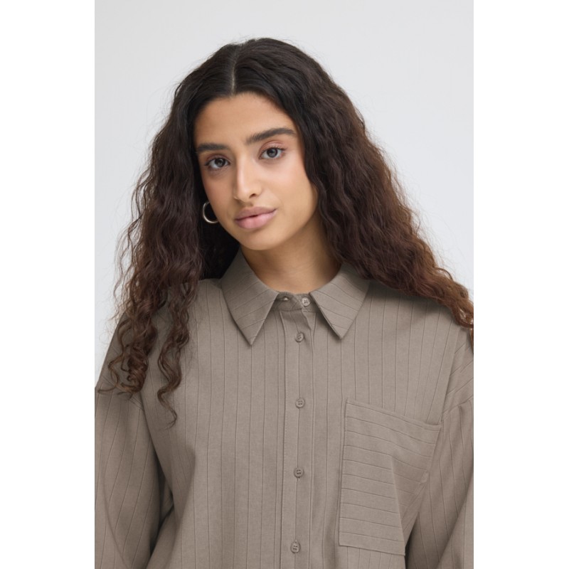 ICHI IXTRINE SH - Brun stribet skjorte jakke 20123489 Fungi