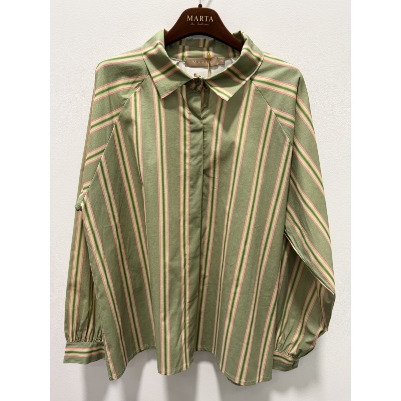 Marta MdcKalia Shirt - Grøn/Pink stribet skjorte 8005 Kaki5891tpg fra Marta du Château
