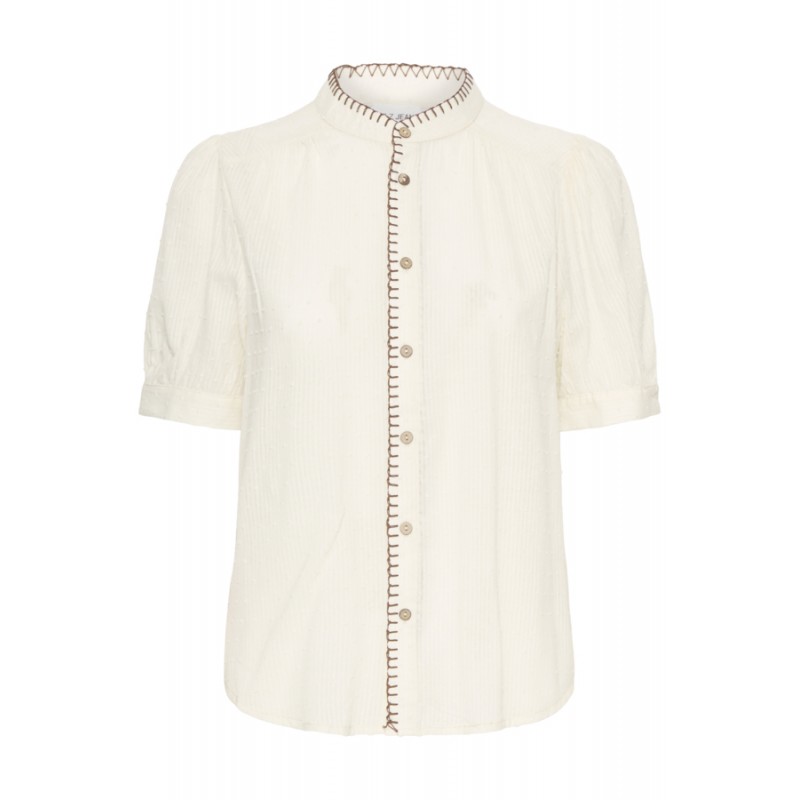 Pulz PZBRIANA SHIRT - Off white skjorte med korte ærmer 50210390 Cloud Dancer fra Pulz