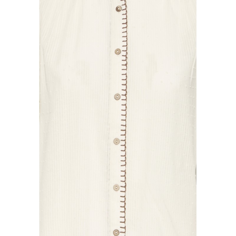 Sød kort ærmet skjorte fra Pulz i en blød bomulds kvalitet. PZBRIANA skjorten har kinakrave og er gennemknappet. Langs knaplukningen og på kraven har en dekorativ detalje med en mørkebrun snoning.