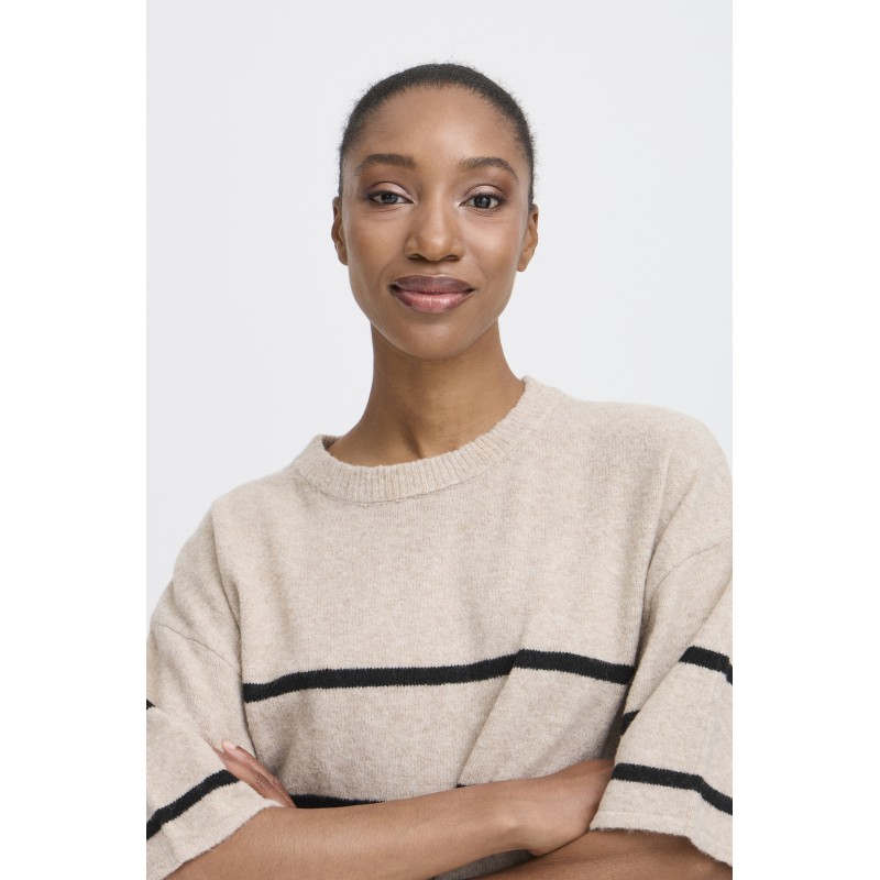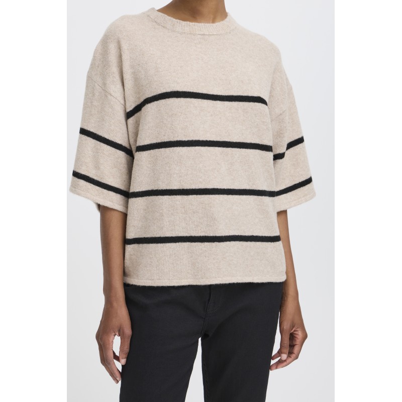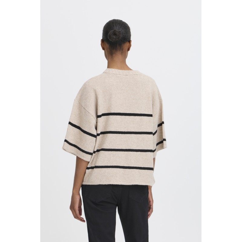 ICHI IHDASILA SS - Beige/Sort stribet strik 20124214 Oatmeal W. Meteorite Stripe