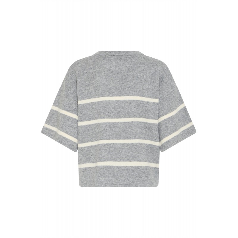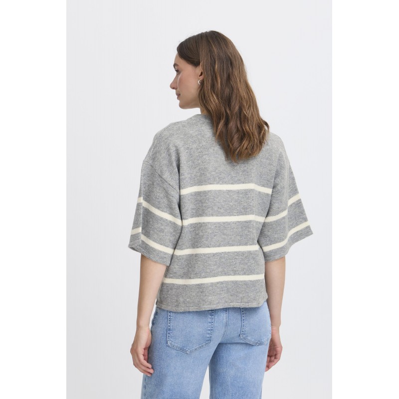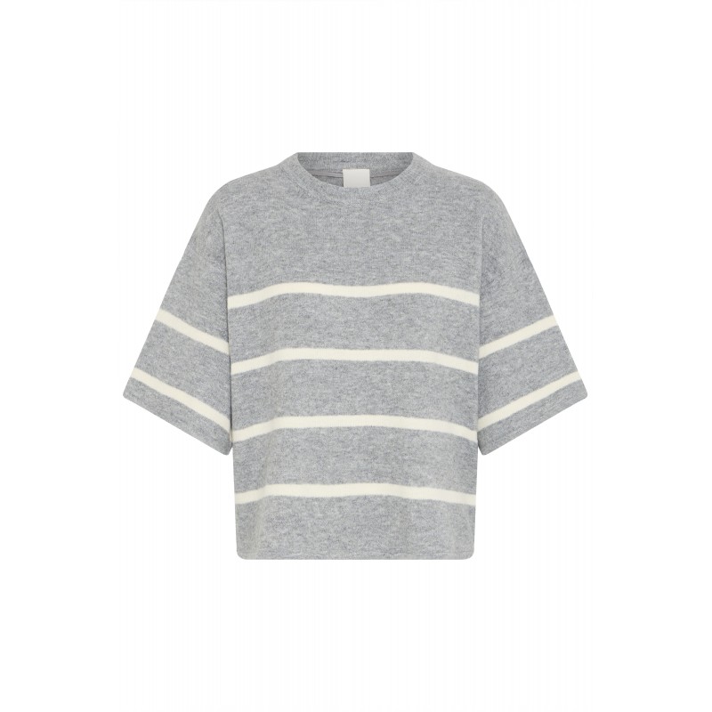 ICHI IHDASILA SS - Grå/hvid stribet strik 20124214 Grey Mlg W. Almond Milk