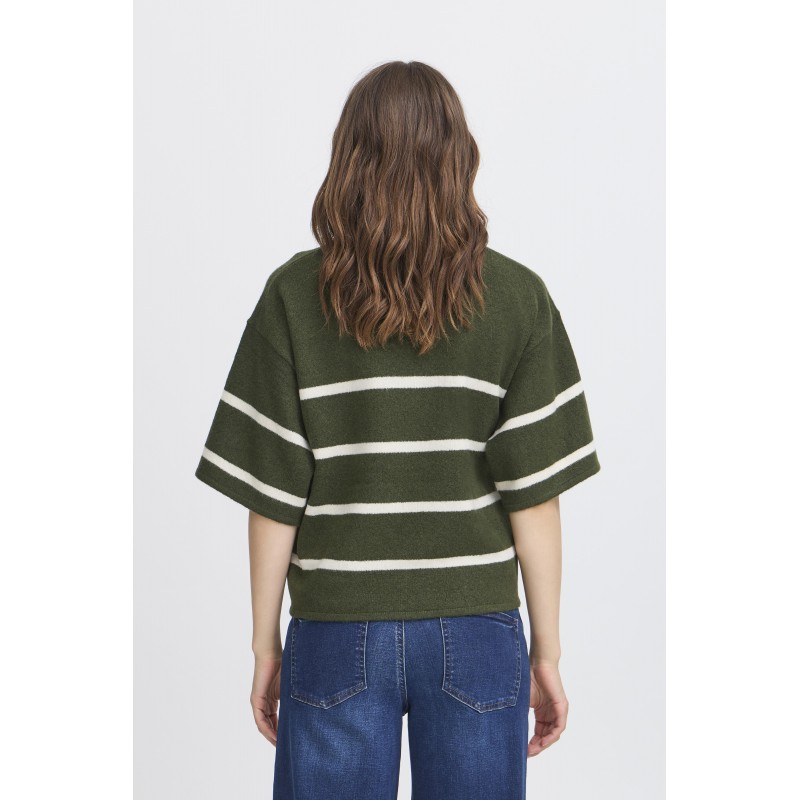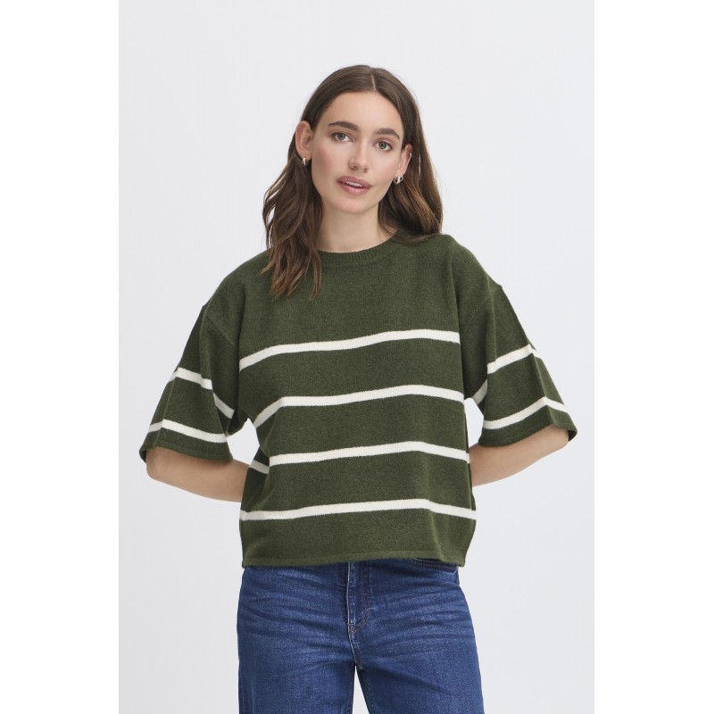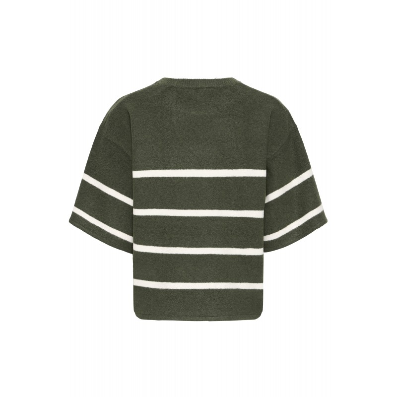 ICHI IHDASILA SS - Grøn/hvid stribet strik 20124214 Rifle Green W. Almond Milk