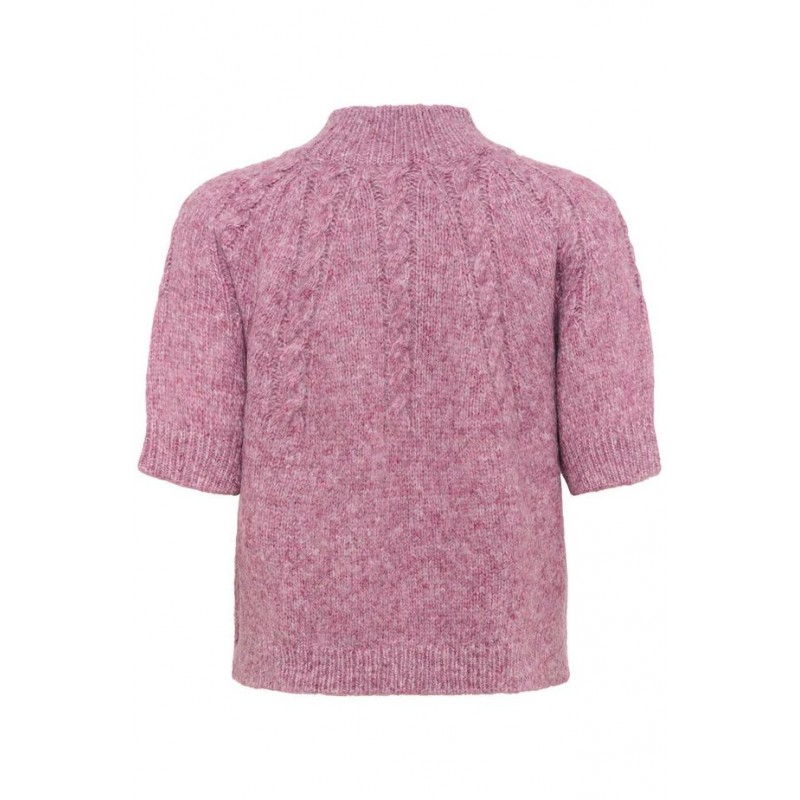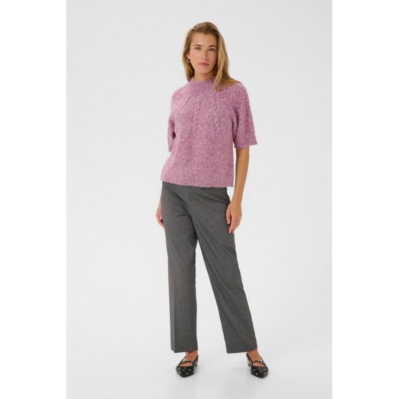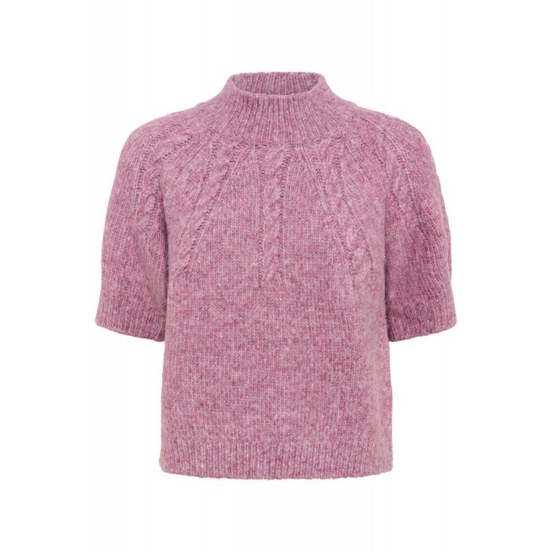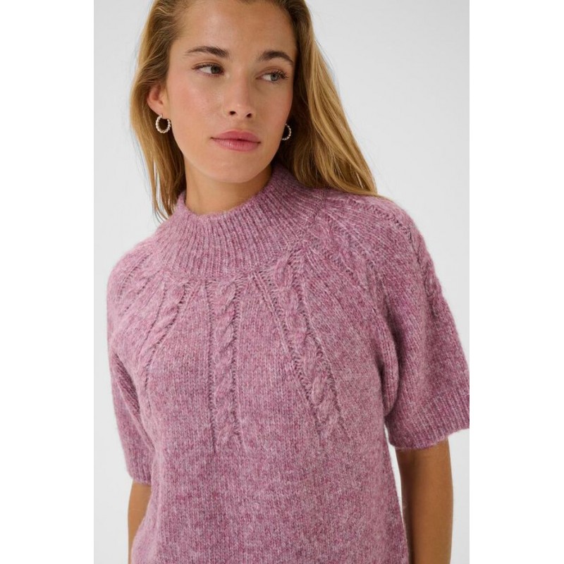 KAcuba pullover er en kortærmet strik. Strikken har en løs pasform og en høj ribstrikket hals. Flot tekstur og afslappet silhuet med raglanærmer og bred rib i kant og ærme.