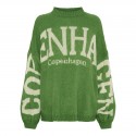 Grøn striktrøje fra Marta Du Chateau med hvidt COPENHAGEN-print. Trøjen har en oversized pasform og lange ærmer til casual brug.