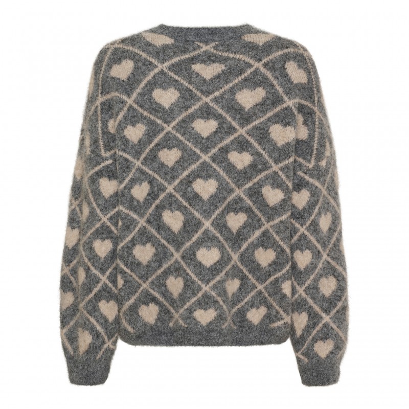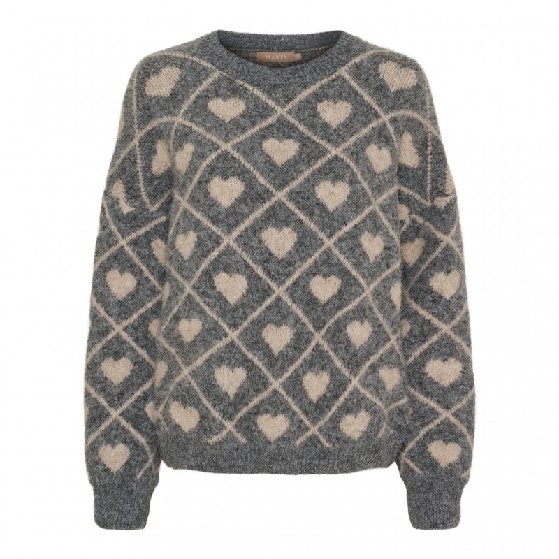 Marta MdcFeray Knit - Grå strik med hjerter 8151 Grigio9513/Beige9504