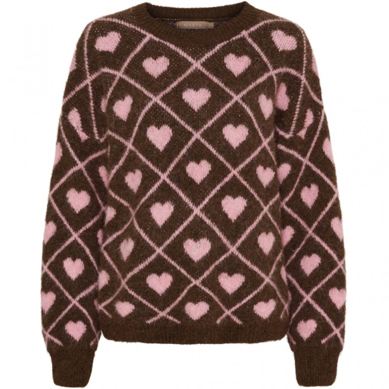 Marta MdcFeray Knit - Brun strik med hjerter 8151 Moro9510/Rosa9532