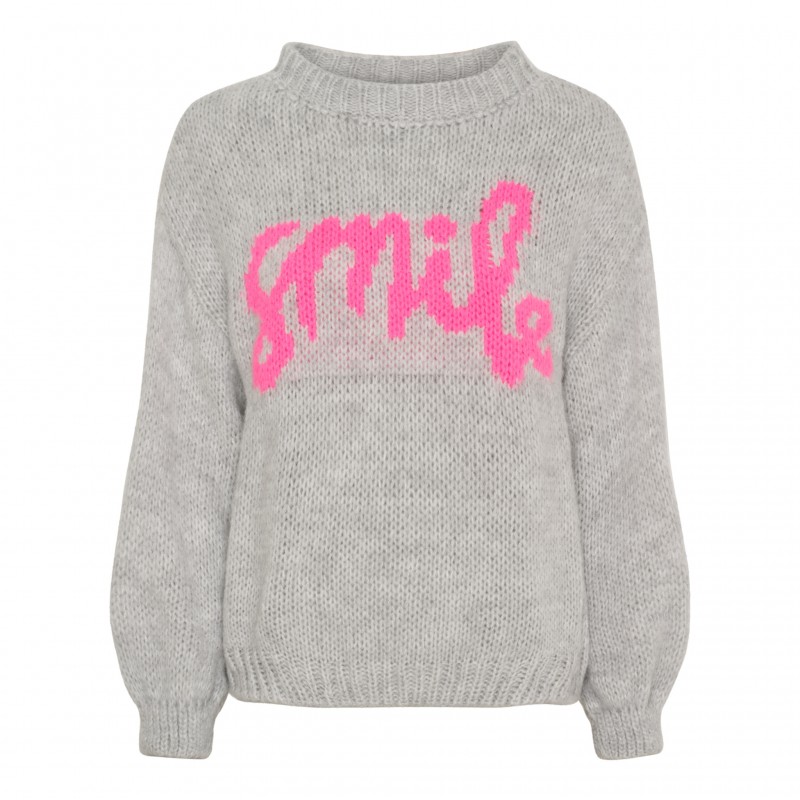 Marta MdcTulip Knit - Grå ensfarvet strik med pink SMILE 9580 Light Grey