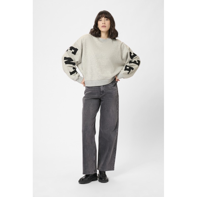 Kalise er en oversized sweatshirt med tydelige blokbogstaver langs ærmerne. Sweatshirten har lange ærmer med dropped shoulders og en klassisk rund hals.