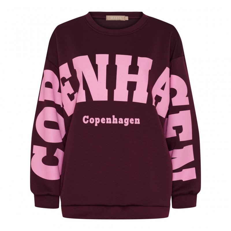MdcHibiscus er en lækker blød sweatshirt fra Marta med et cool COPENHAGEN tryk i kontrastfarve. Sweatshirten har lange ærmer, en rund hals og en lækker oversize pasform.