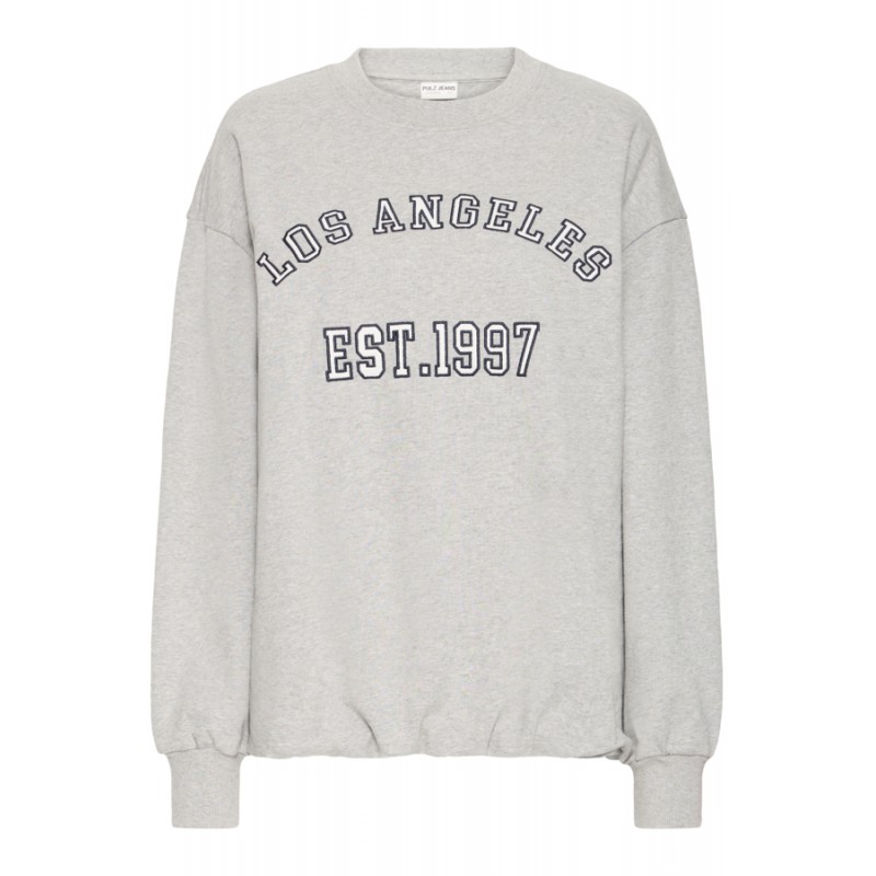 Blød og lækker sweatshirt fra Pulz med et cool Los Angeles tryk på fronten. Sweatshirten har en løs pasform med rund hals og lange ærmer.