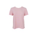 En skøn og alsidig T-shirt med striber, der bringer energi og glæde ind i garderoben. Den har en klassisk rund halsudskæring og korte ærmer, som giver et afslappet og anvendeligt udtryk. Pasformen er let og behagelig med en flatterende silhuet, der gør den nem at style til både jeans, nederdele og shorts.