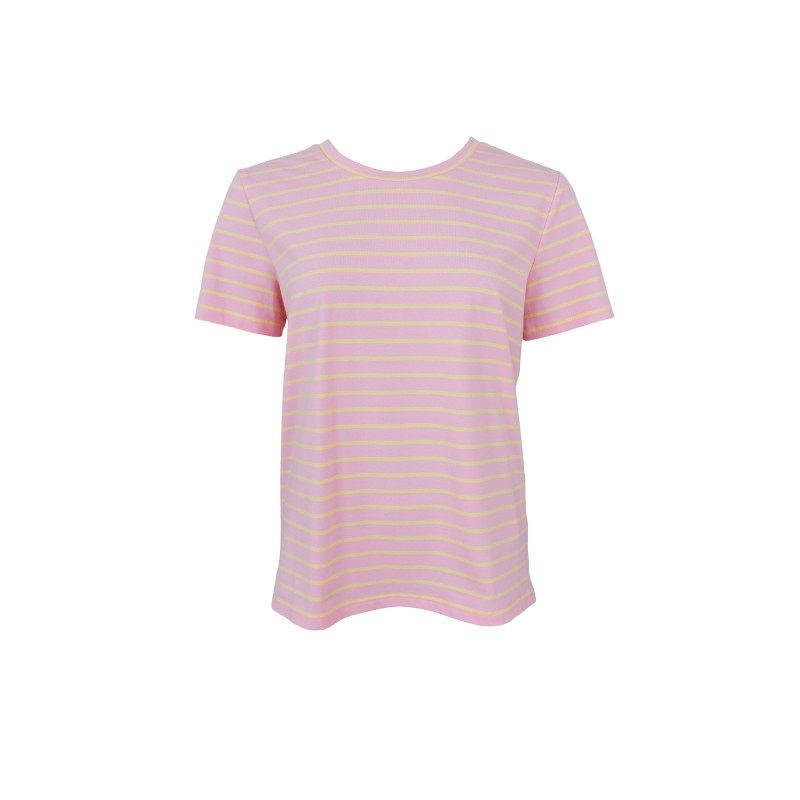 Black Colour BCMAYLEE SS TEE - Lyserød/gul stribet t-shirt 41069 Candy/Yellow