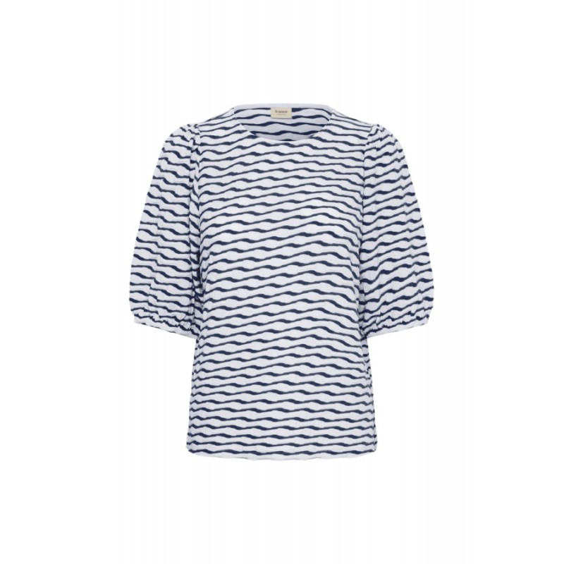 Lækker blød stribet t-shirt fra Fransa i en skøn vaflet kvalitet. FRNIAMY t-shirten har rund hals og korte ærmer med en elastikkant.