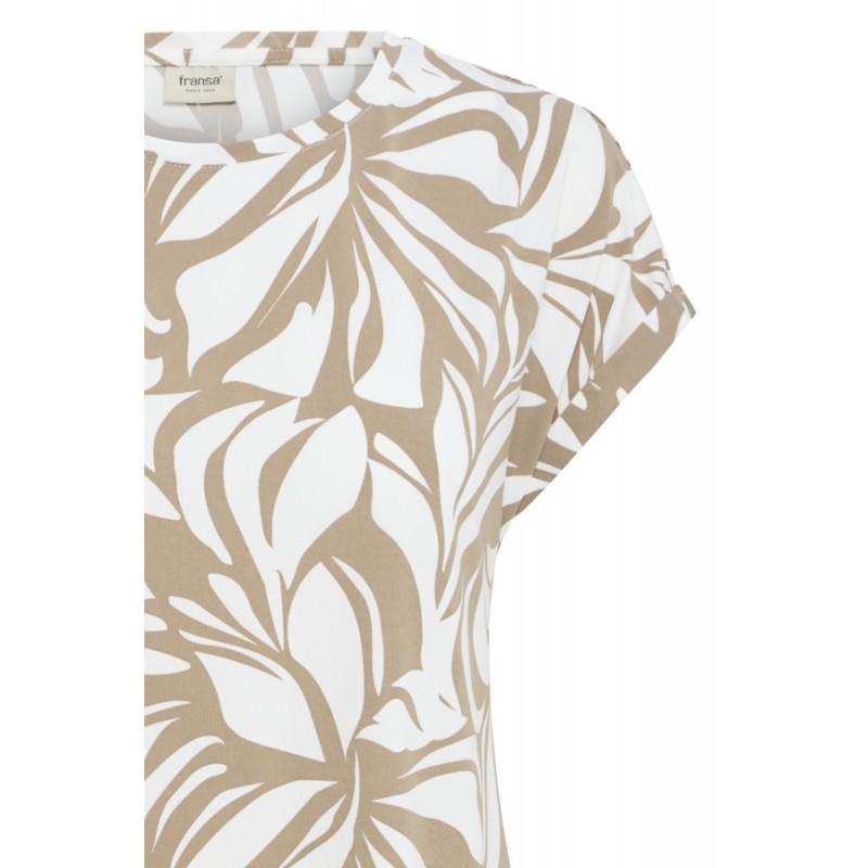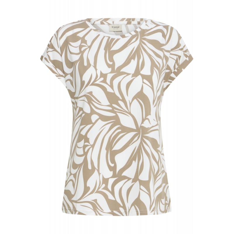 Skøn printet t-shirt fra Fransa, med en enkel pasform i en lækker jersey kvalitet. T-shirten har rund hals og korte ærmer, med et lille opsmøg på ærmet.