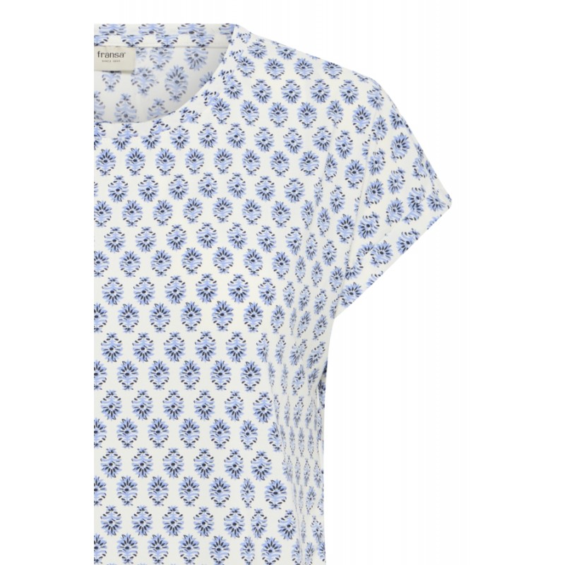 Skøn printet t-shirt fra Fransa, med en enkel pasform i en lækker jersey kvalitet. T-shirten har rund hals og korte ærmer, med et lille opsmøg på ærmet.