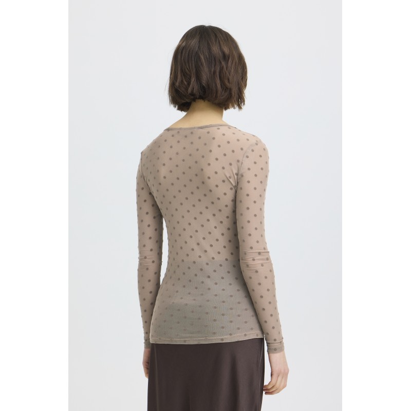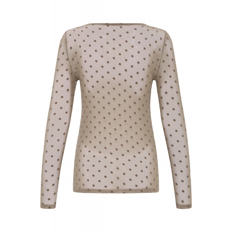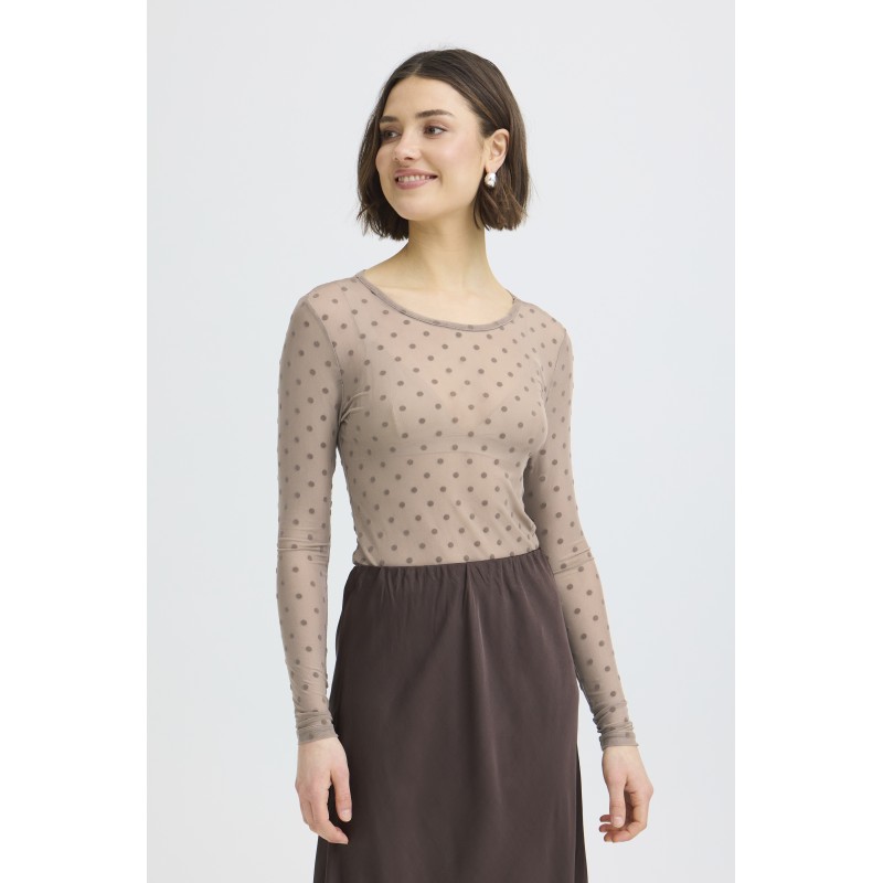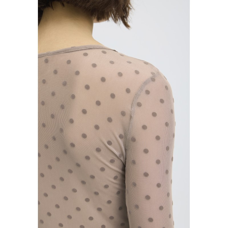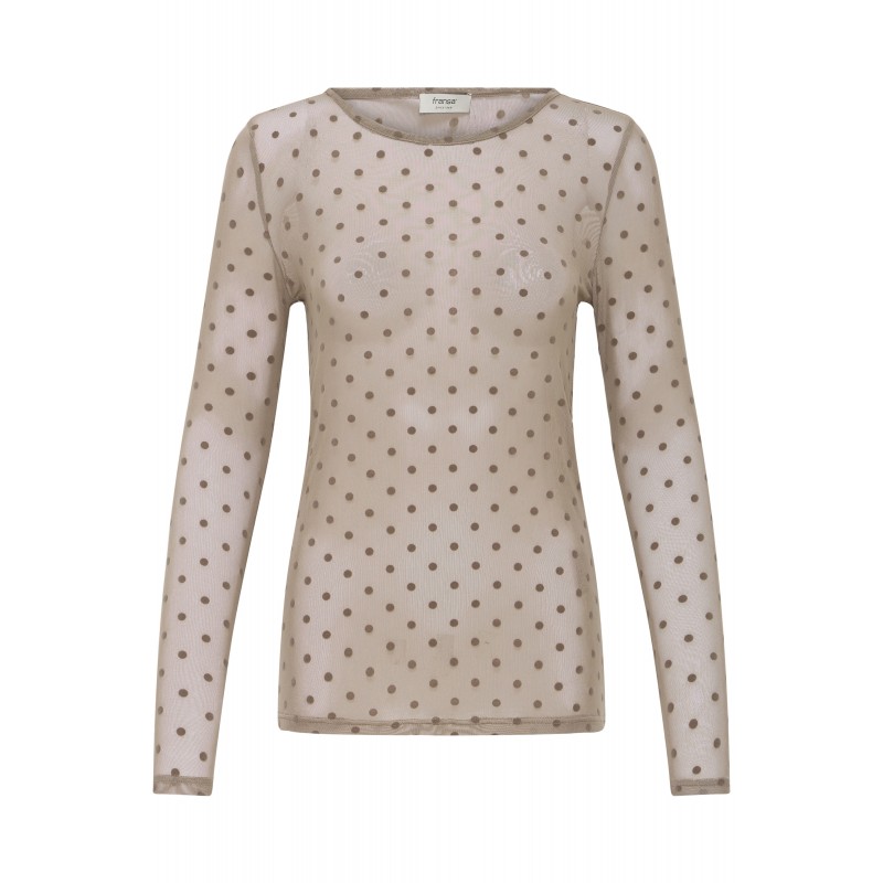 Fransa FXDETA TEE 1 - Beige mesh bluse med prikker 20610740 Mountain Trail