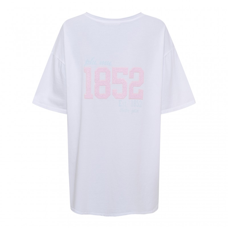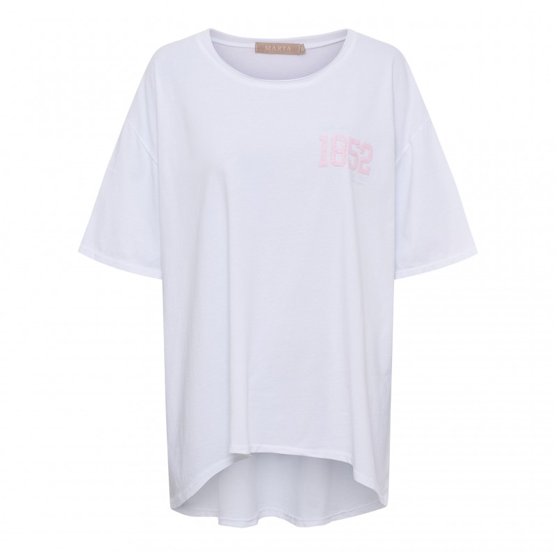 MdcRaniella er en oversize hvid t-shirt med lyserødt 1859 logo.