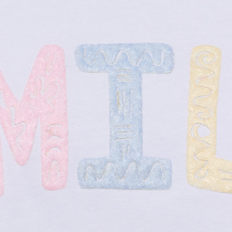 Skøn t-shirt fra Marta Du Chateau i en lækker blød kvalitet. MdcVespera t-shirten har et cool SMILE statement frotte front print i kontrast farve, som giver det helt rigtige udtryk.