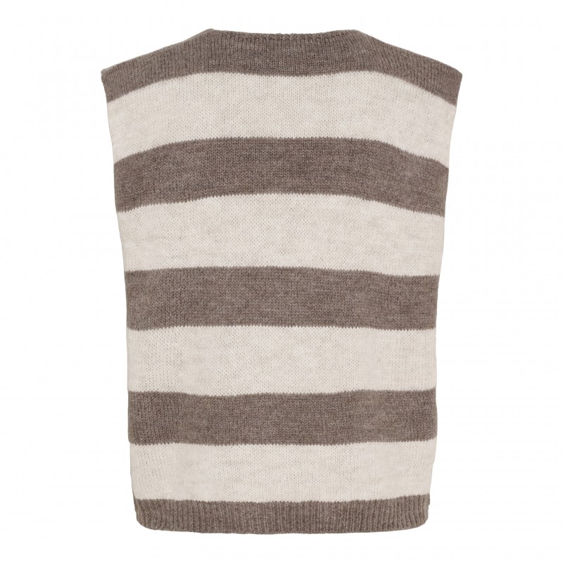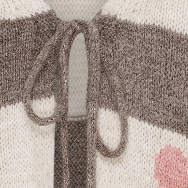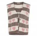 Sød stribet strik vest med rosa hjerter og lille binde snøre foran.