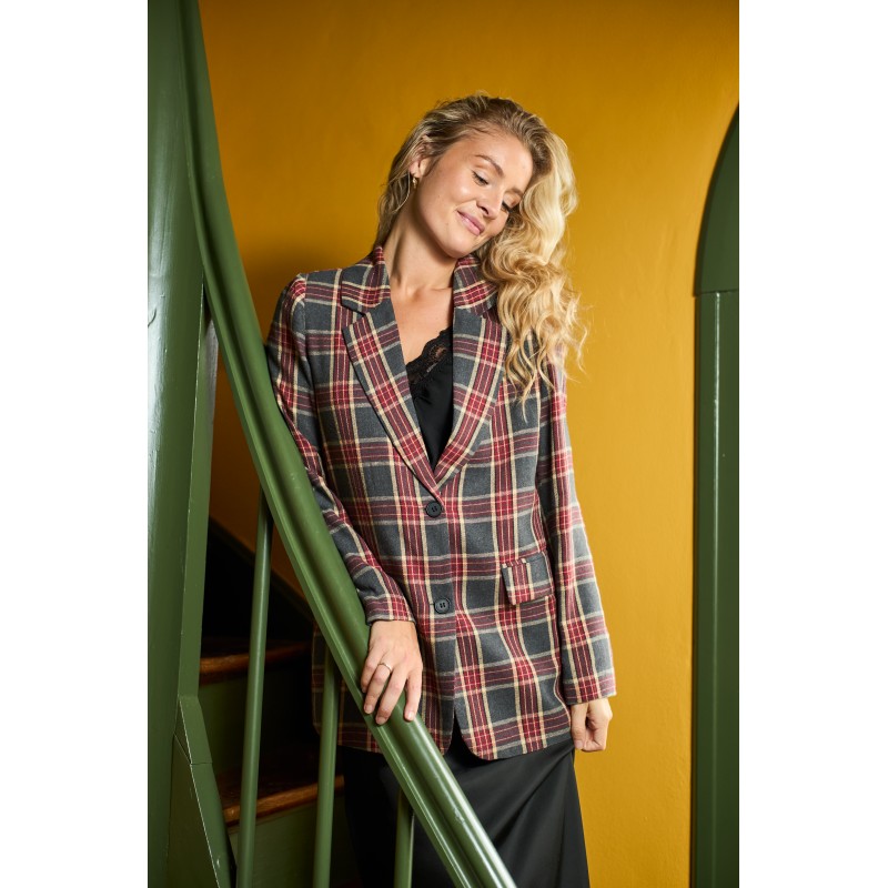 Black Colour BCNELLIE BLAZER - Vinrød ternet blazer 41007 Wine fra Black Colour