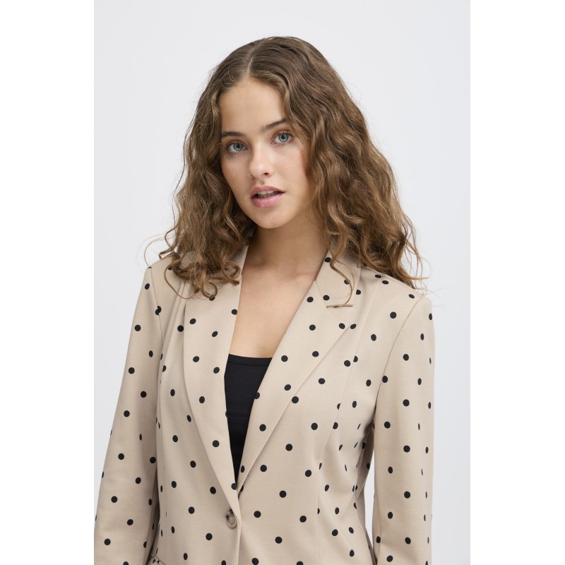 ICHI IXKATE DOT LONG BLAZER - Sandfarvet blazer med sorte prikker 20123585