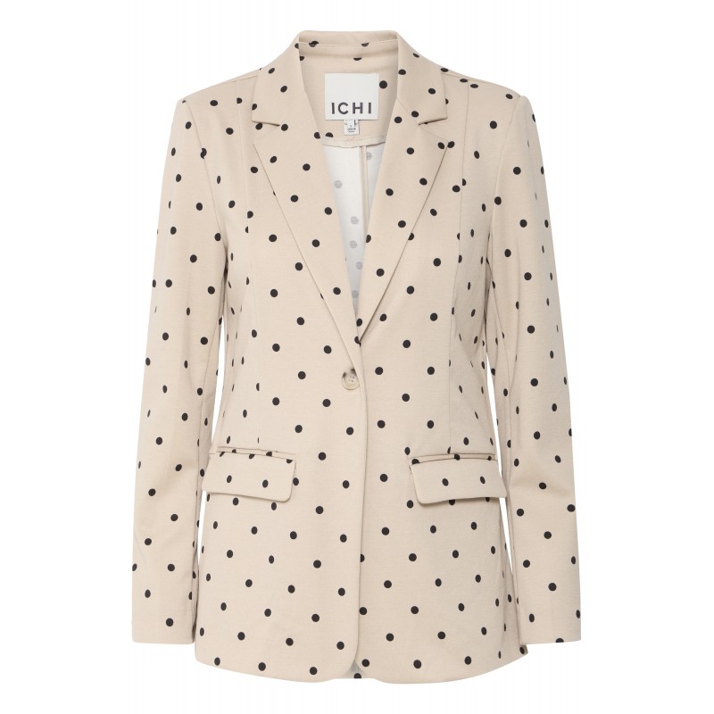 ICHI IXKATE DOT LONG BLAZER - Sandfarvet blazer med sorte prikker 20123585 fra Ichi