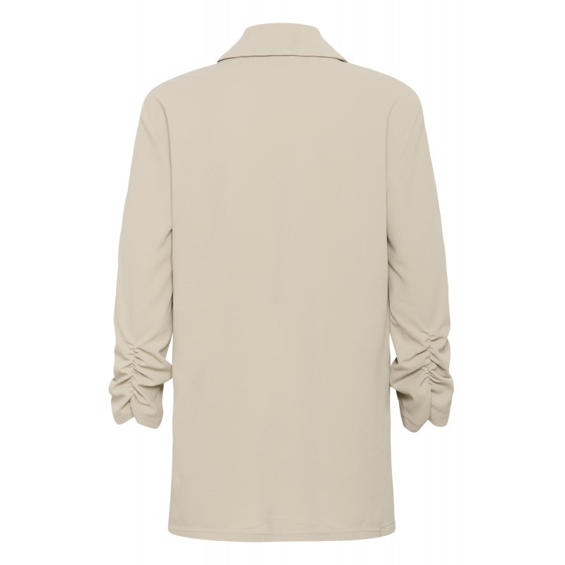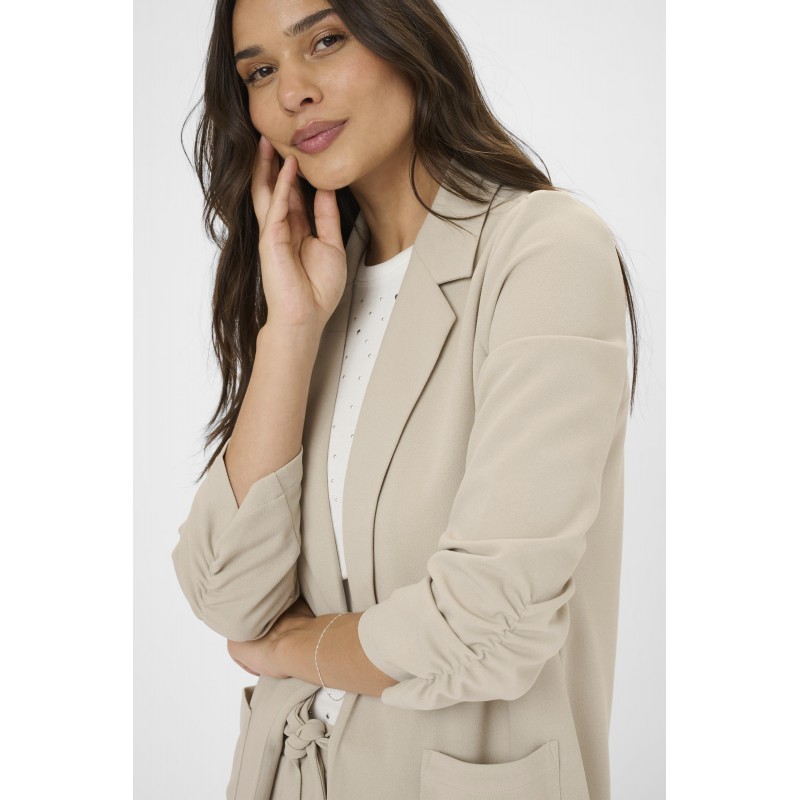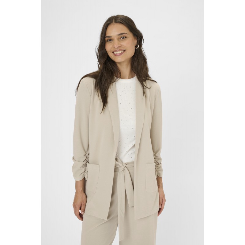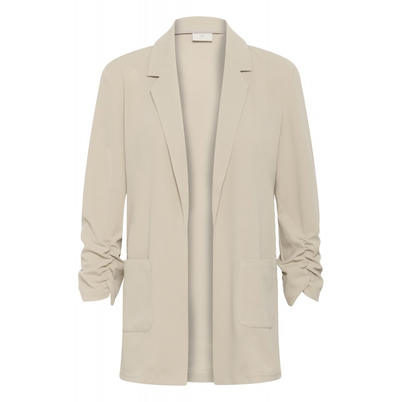 Lækker blazer fra Kaffe med en løsthængende pasform. KApheobe blazeren er lavet i en let strygefri kvalitet og har 3/4 ærmer med rynke effekt forneden.