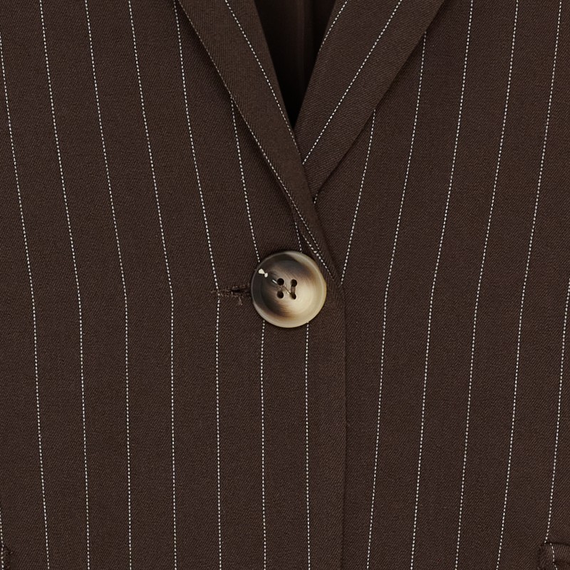 Lækker mørkebrun blazer jakke fra Marta du château med smalle hvide striber.
