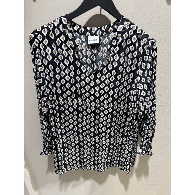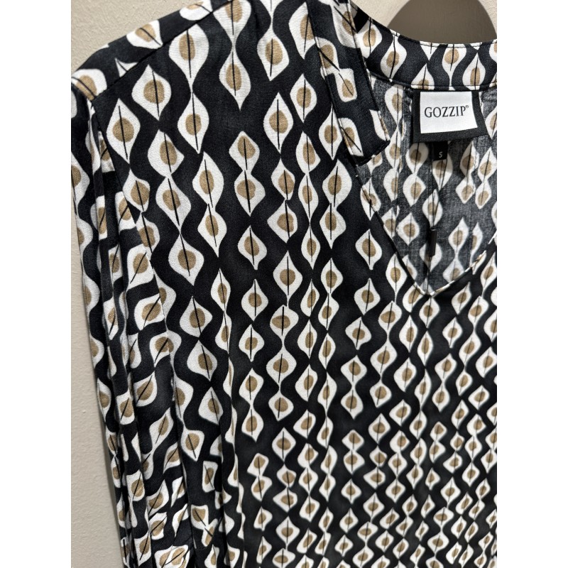Gozzip GAnnah Blouse - Sort printet bluse G261025 Black