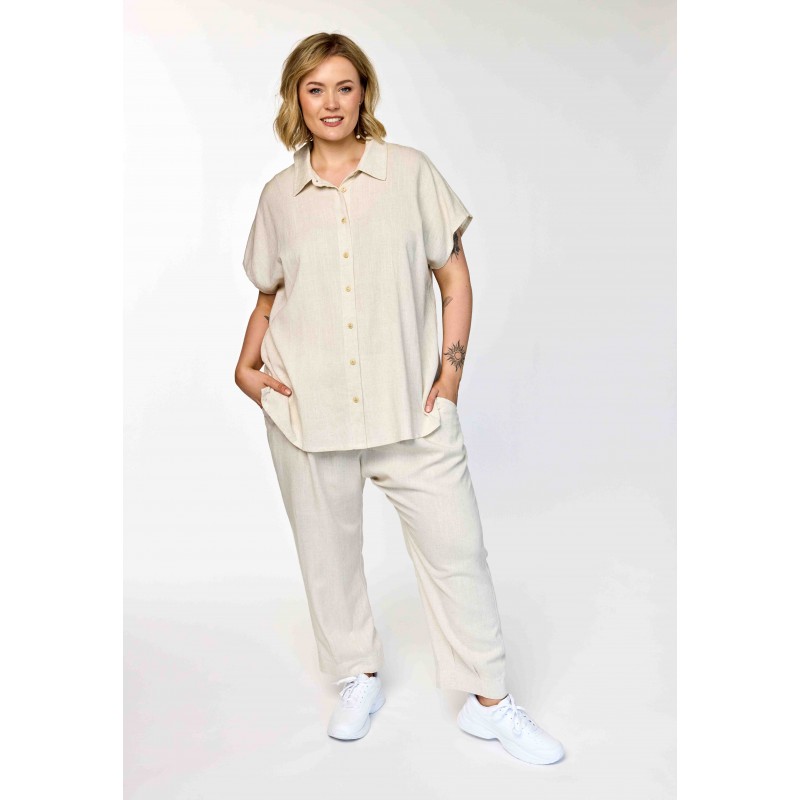 GKaisa blouse er en let og luftig bluse i 70% viskose og 30% hør, designet med et afslappet og naturligt udtryk. Modellen har en enkel silhuet med god vidde, som giver et blødt fald og gør blusen behagelig at bære på varme dage såvel som i overgangsperioder.
