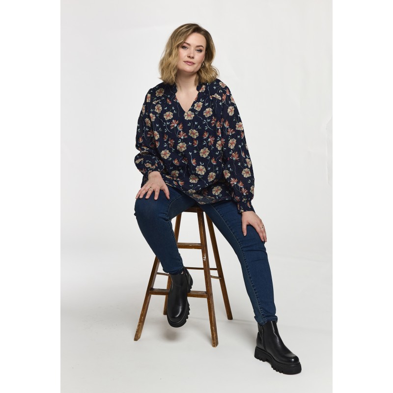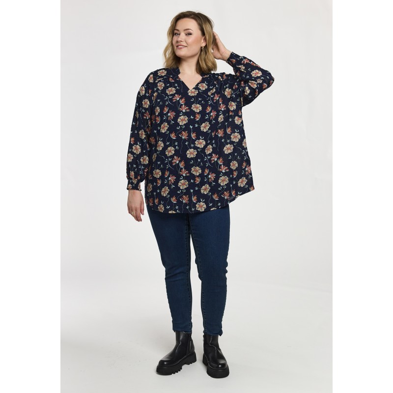 Gozzip GSilke Blouse - Blå blomstret bluse G261002 Navy Print fra Gozzip
