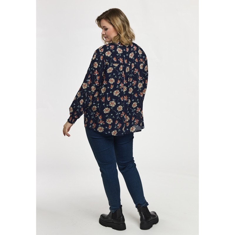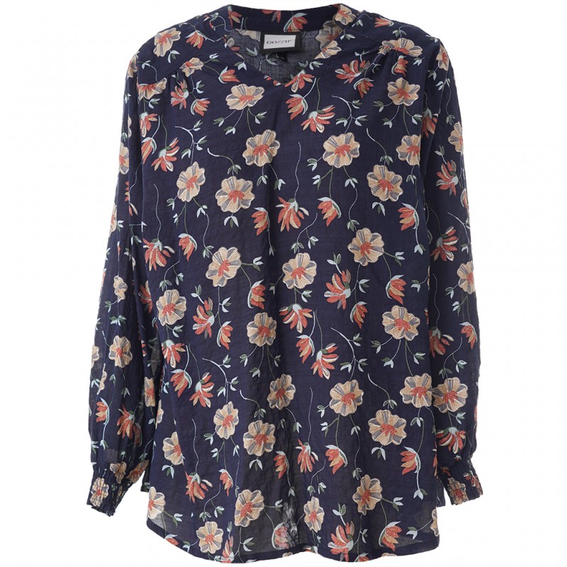 Gozzip GSilke Blouse - Blå blomstret bluse G261002 Navy Print