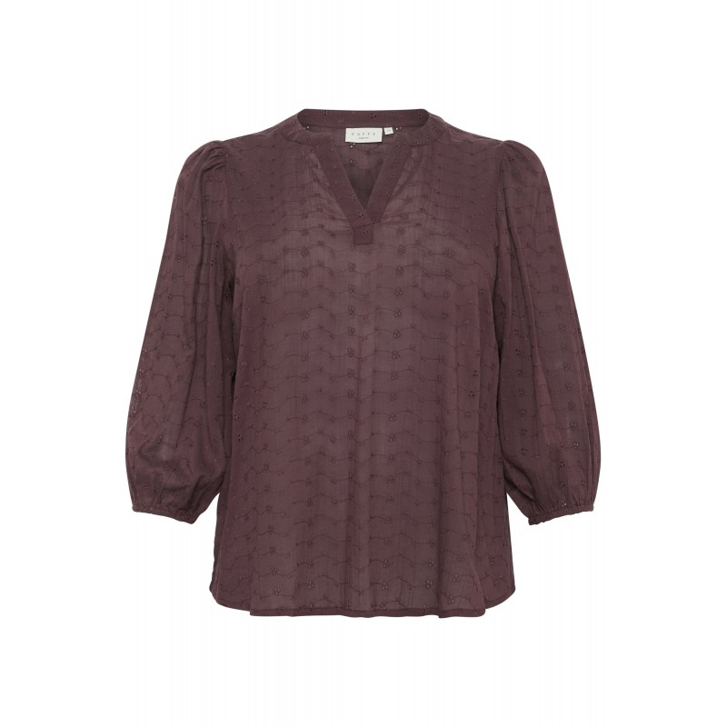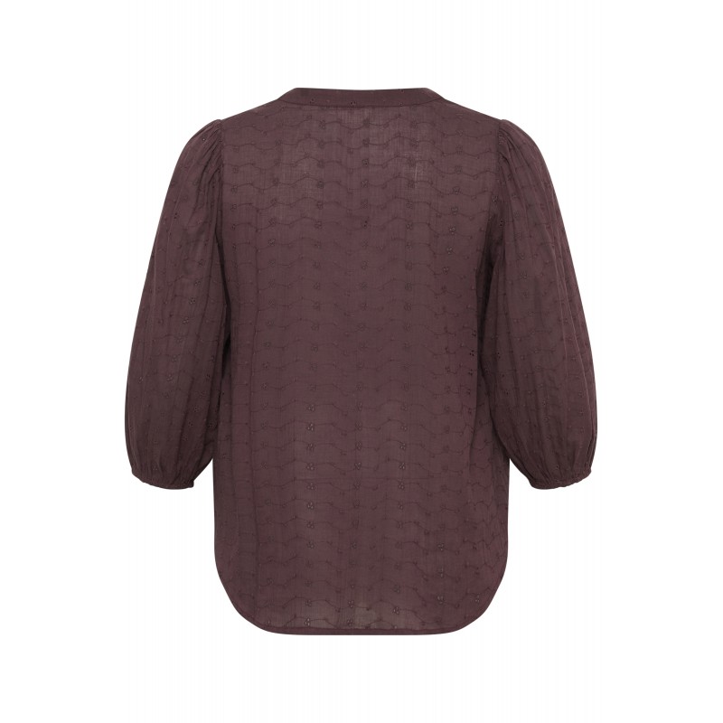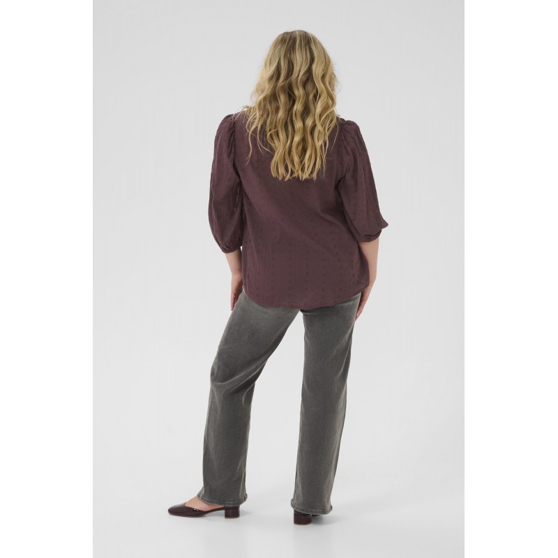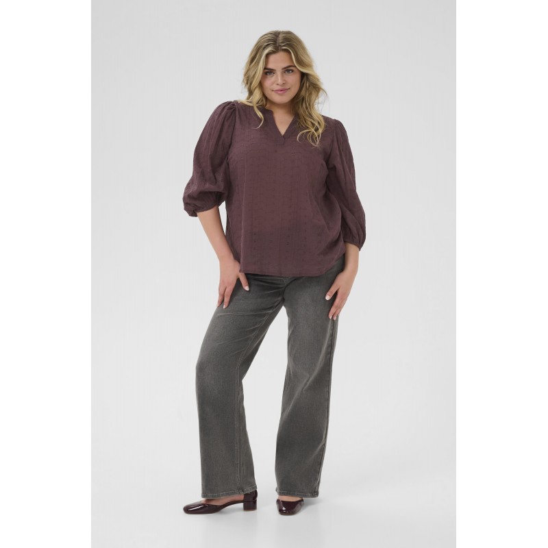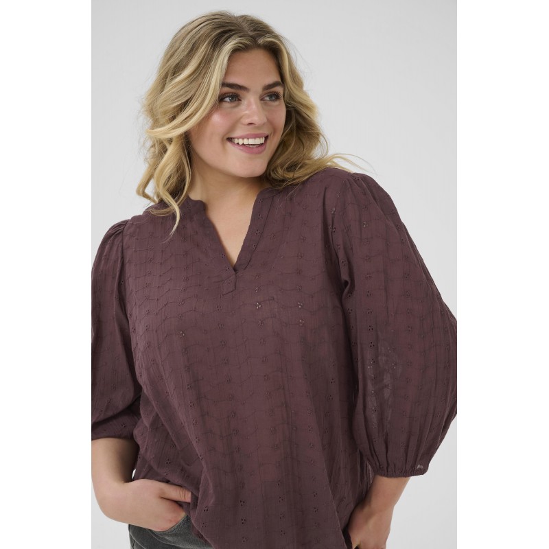 Kaffe Curve KCmaia Blouse - Bordeaux bluse med 3/4 ærmer 10583470 Fudge fra Kaffe Curve
