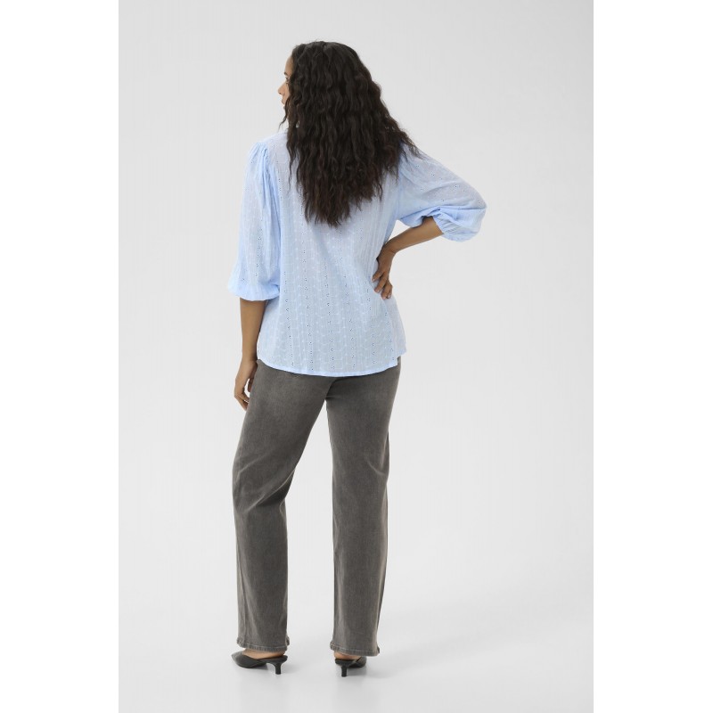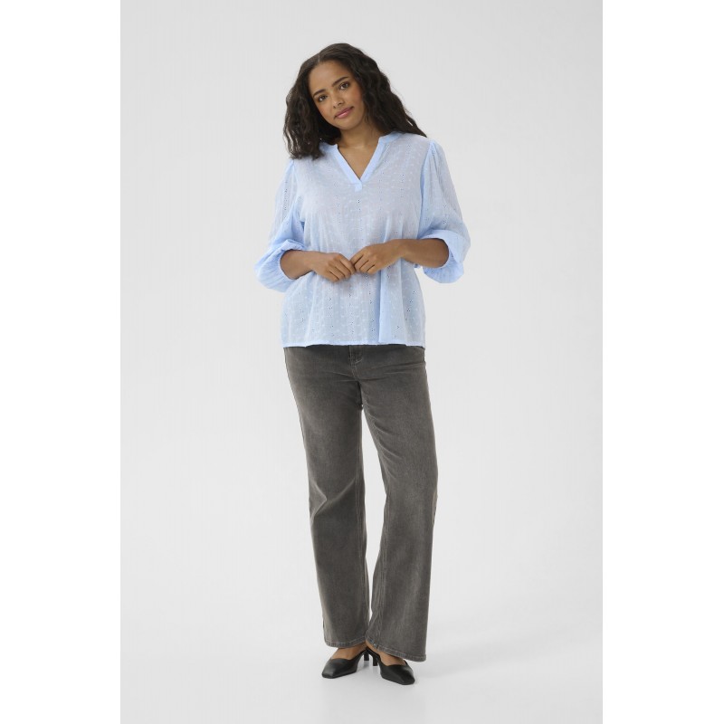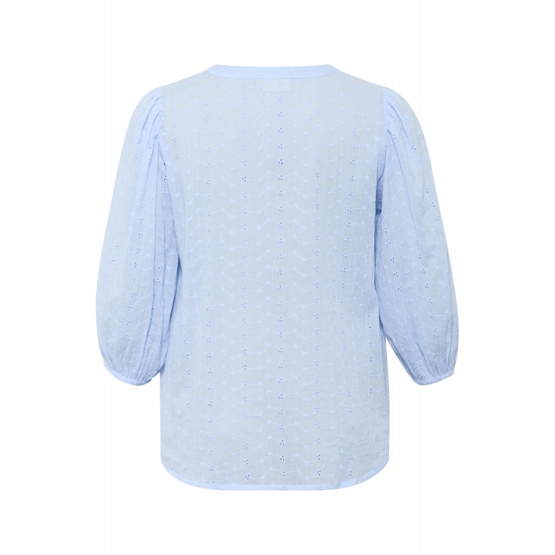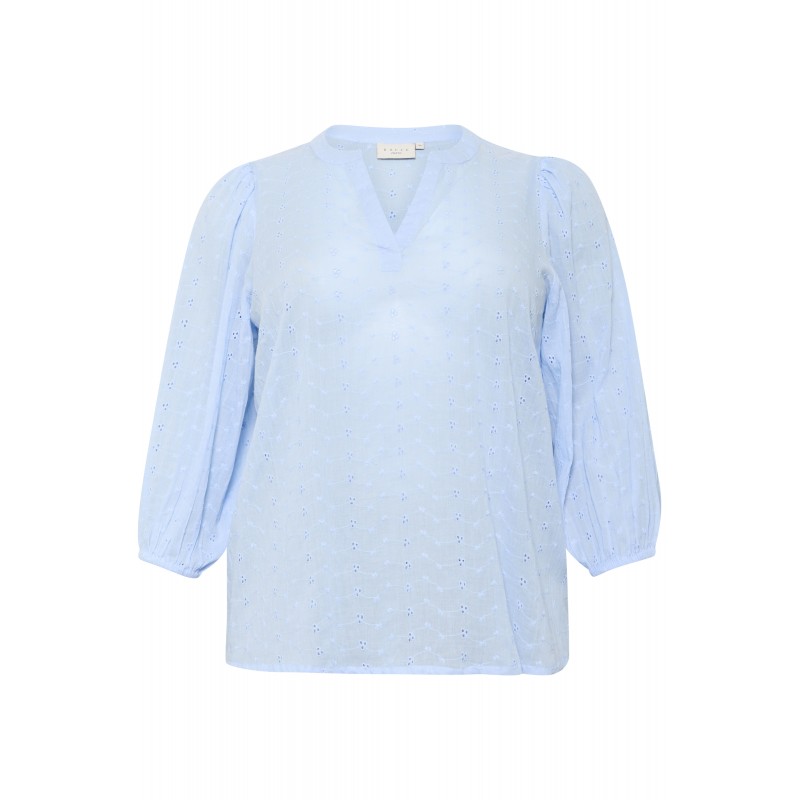 Kaffe Curve KCmaia Blouse - Lyseblå bluse med 3/4 ærmer 10583470 Windsurfer
