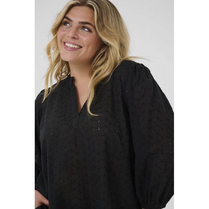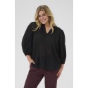 Kaffe Curve KCmaia Blouse - Sort bluse med 3/4 ærmer 10583470 Black Deep