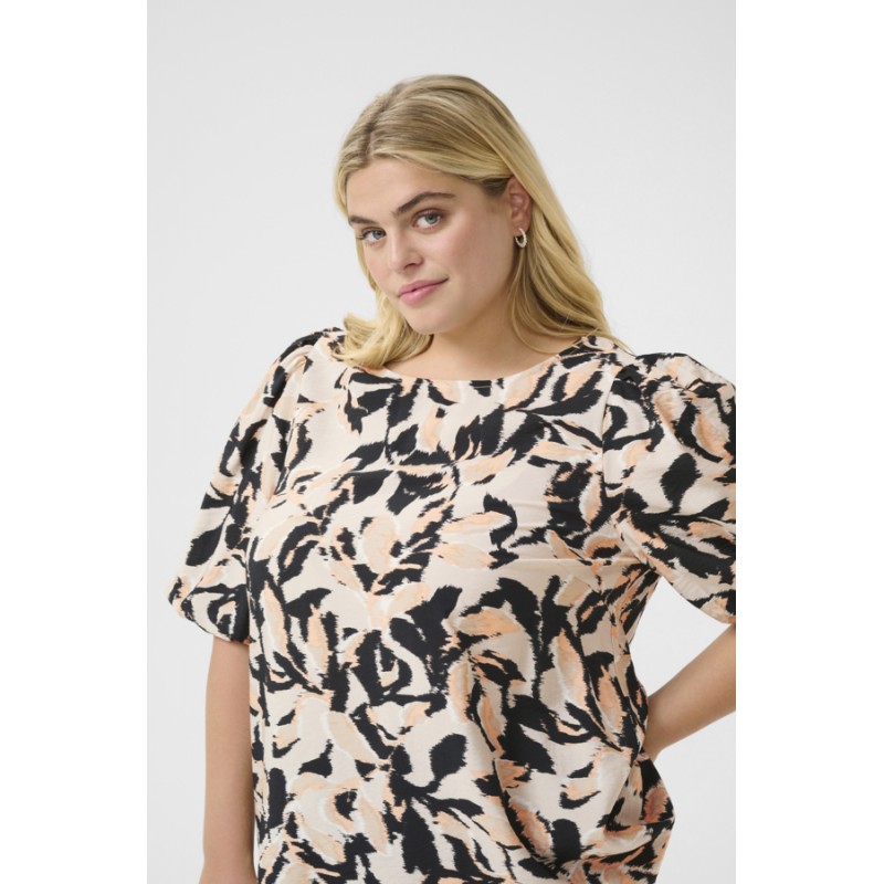 Kaffe Curve KCpaca Blouse - Koral printet bluse 10583085 Beige/Black/Peach