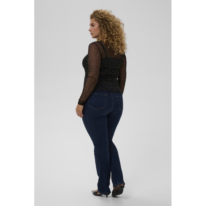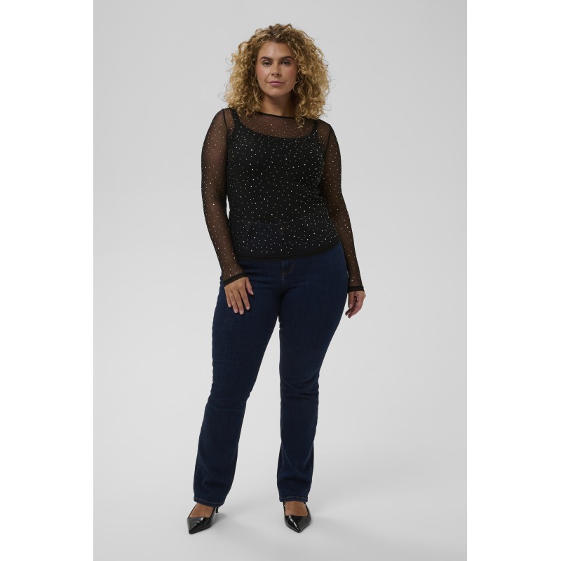 Kaffe Curve KCtina T-shirt - Sort mesh med sten 10583839 Black Deep CC fra Kaffe Curve