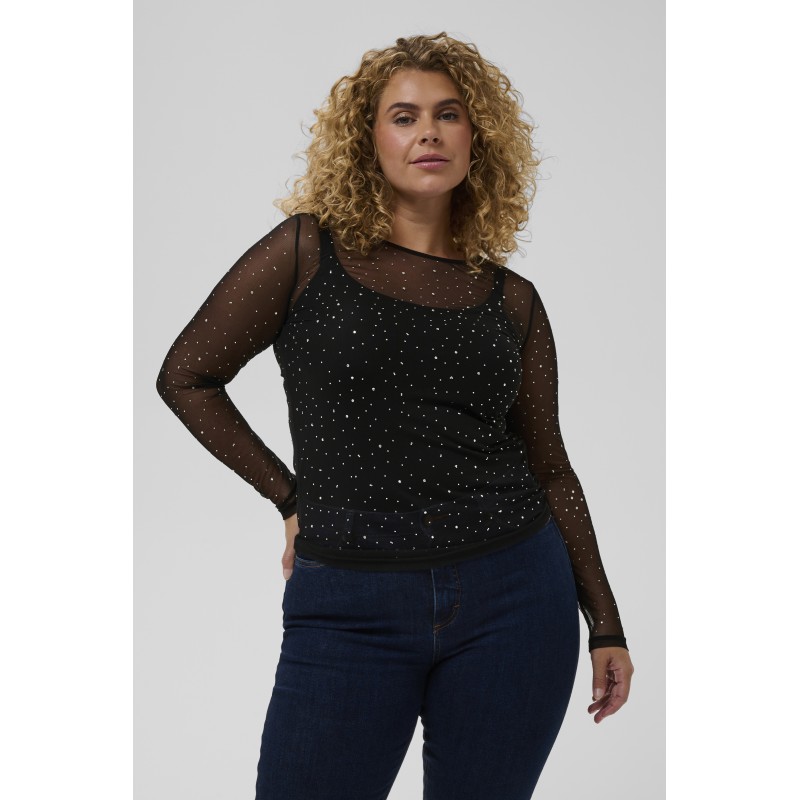 Kaffe Curve KCtina T-shirt - Sort mesh med sten 10583839 Black Deep CC