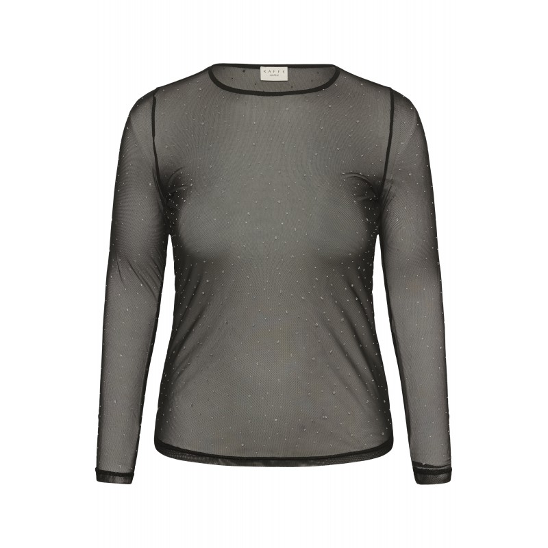 KCtina t-shirt er en langærmet mesh med sten. T-shirten har rund hals og er utrolig elegant bluse til, at putte under din kjole eller bluse.