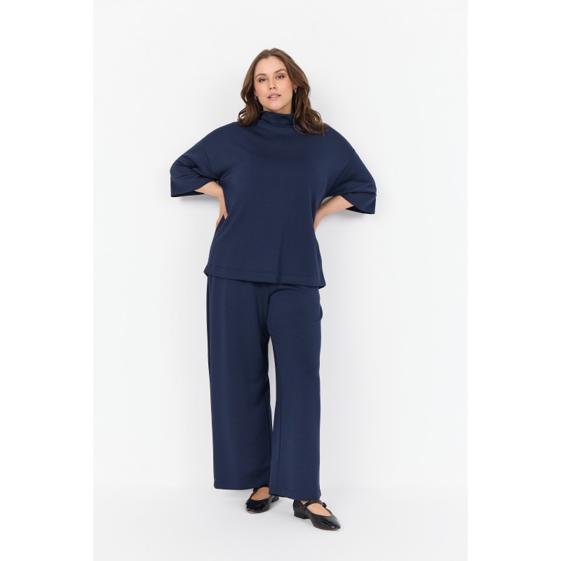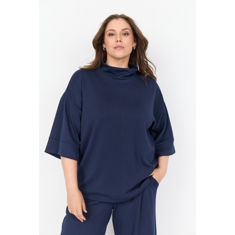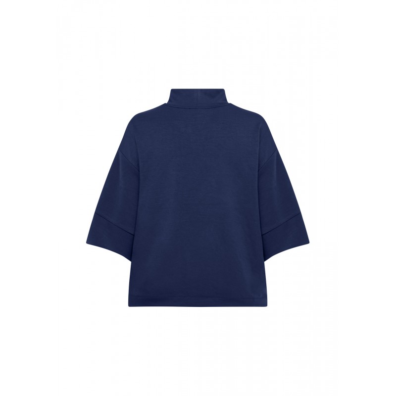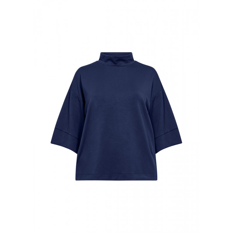 WA-SABINA 64 er en T-shirt fremstillet af 48 % modal, 48 % polyester og 4 % elastan. T-shirten har en stilfuld mock hals og brede 3/4-lange ærmer, som skaber en afslappet silhuet. Sæt den sammen med slanke jeans eller en elegant nederdel for et elegant look.