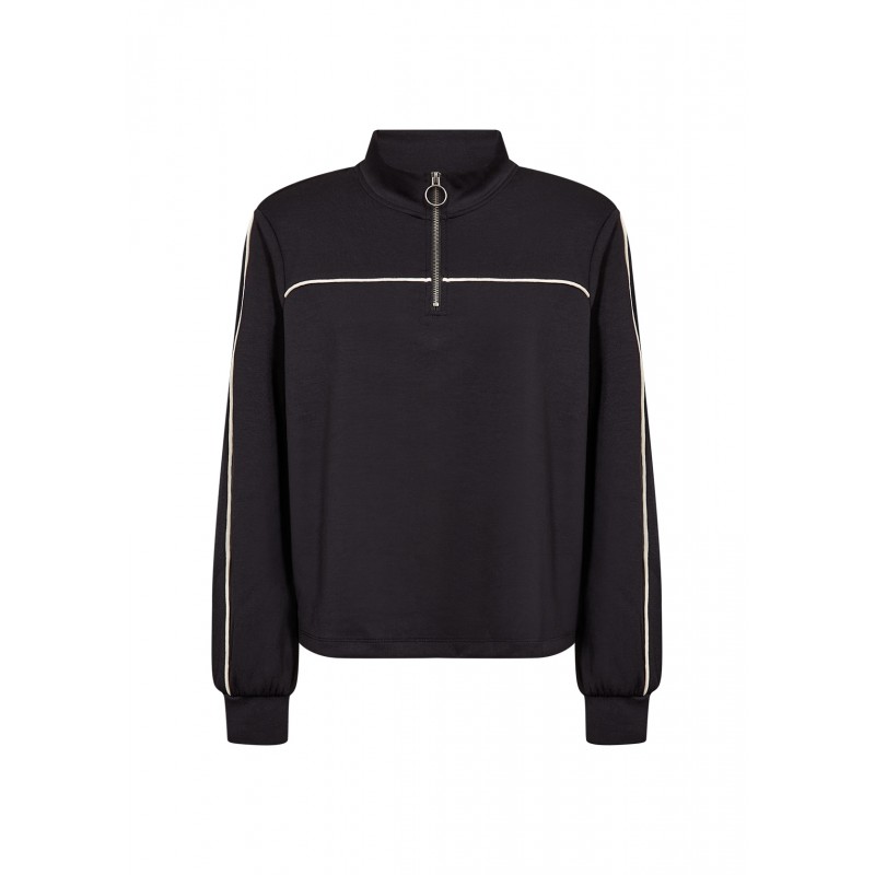 WA-SABINA 88 er en cool sweatshirt fremstillet af 48 % modal, 48 % polyester og 4 % elastane. Den har en høj krave med halv lynlås og stilfulde pipingdetaljer langs ærmerne og brystet. Sæt den sammen med denimjeans eller joggers for et afslappet og cool look.