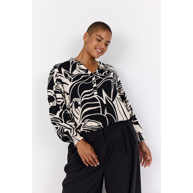 Wasabi WA-SAMENA 2 - Sort printet bluse W10686 Black Combi