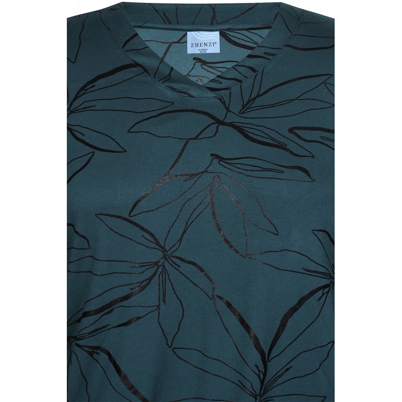Zhenzi Zh-Sylva 1105-Blouse L/S - Petroleum farvet bluse med print 201105 Teal Green