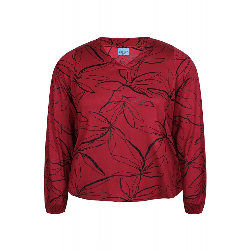 Zhenzi Zh-Sylva 1105-Blouse L/S - Rød bluse med print 201105 Burgundy Red fra Zhenzi