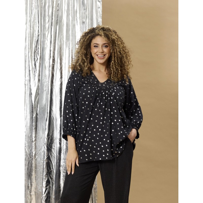 Zhenzi Zh-Vela 1128-Blouse 3/4 - Sort bluse med sølv prikker 201128 Black fra Zhenzi