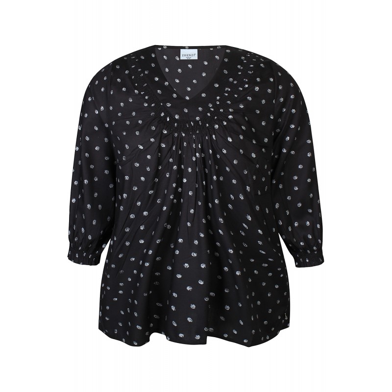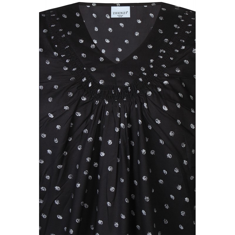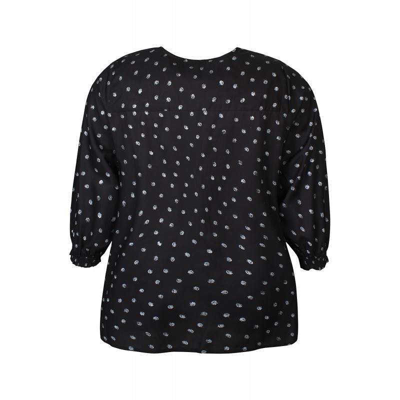 Zhenzi Zh-Vela 1128-Blouse 3/4 - Sort bluse med sølv prikker 201128 Black